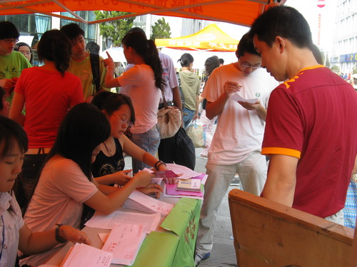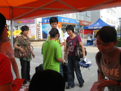 早上七点左右开始,就有新生陆续过来报道,为了方便解决新生及家长的问题和需求,使新生尽快熟悉新的学习及生活环境,金沙集团1862cc的志愿者们一批一批有序热情地为他们提供最直接的帮助:报到登记、提箱拎袋、引领寝室、解答疑问等。在C区的各个角落都有志愿者辛苦而快乐的身影。虽然太阳有些猛烈,但这丝毫没有减退他们乐于奉献的精神。有了志愿者的带领,新生更容易地找到了各自的寝室;有了志愿者的介绍,新生更快地熟悉了新的环境;有了志愿者的帮助,新生更深刻地体会到了温大人的热情,同时也体会到了金沙集团1862cc大家庭的温暖。