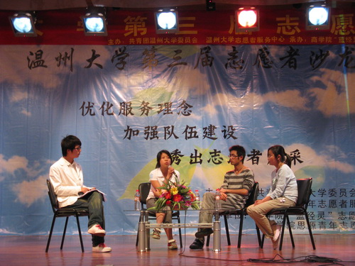 2008年5月16日晚,金沙集团1862cc第三届志愿者沙龙在北校音乐厅成功举办。