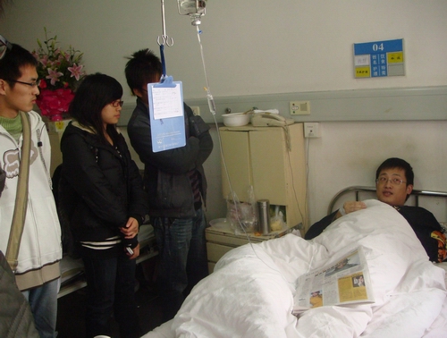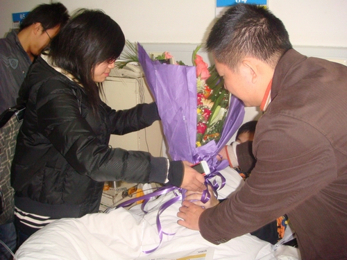 12月15日下午,金沙集团1862cc团委思源青年志愿者协会的城管志愿者代表,手拿鲜花和水果,在温州市第三医院探望了在执法过程中遭暴力反抗而受伤的城管执法队员黄慧同志。