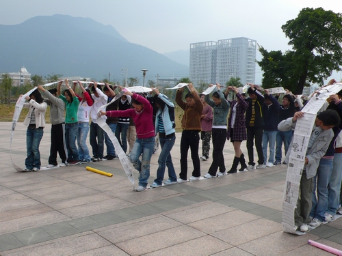 11月25日上午7:30,金沙官网邀请了三位专业训练师在金沙集团1862cc前面的场地上,给第五期团学干部培训班的所有学员进行了一场“业余兼专业”的素质拓展户外训练营活动。