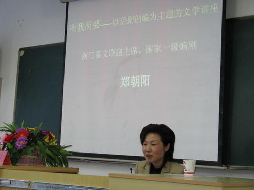 11月21日下午2点30分,继金沙集团1862cc校园话剧节开幕式后,我们迎来了以“话剧在中国”为主题的文学讲座。此次讲座,金沙集团1862cc有幸邀请到国家一级编剧、浙江省文联副主席郑朝阳老师来为我们高教园区的学子们主讲。在北校区人文楼201教室,同学们准时赴场,座无虚席。