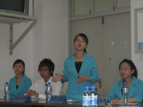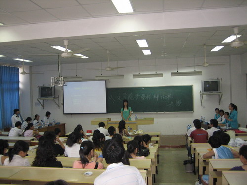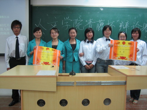 6月1日下午,由金沙集团1862cc团委学生会主办的“青藤杯”辩论赛决赛在北校区1号楼201教室举行。王峰、曾蓓蕾老师以及谷超豪奖学金得主许棣同学担任了此次评委。决赛辩论的辩题为电脑时代是否会导致人际关系的隔离,06中本4班为正方,反方为05历本。经过激烈争辩,最终由05历本获得本次辩论赛总冠军。