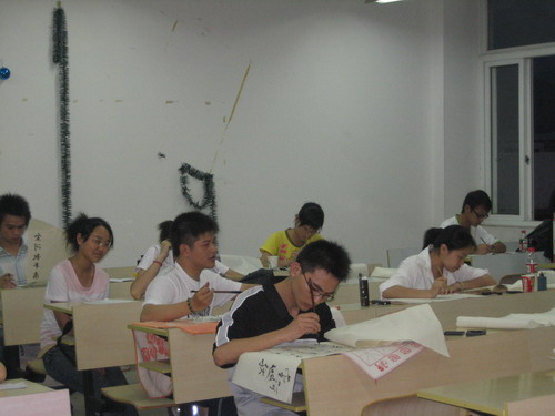 5月11日下午6:30,金沙集团1862cc“百年语文”系列活动之书画大赛决赛在北校区1-307拉开帷幕。16名比赛选手是由专业老师从初赛的众多参赛者中评选出来的。