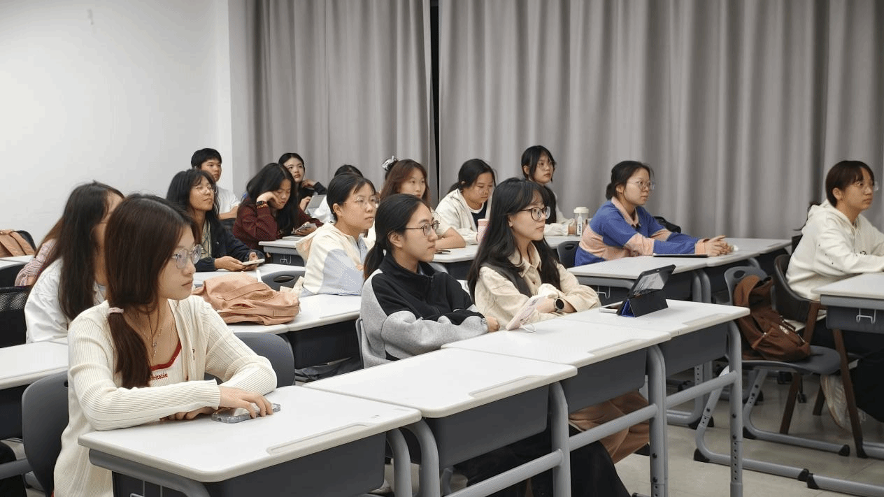 接着,王一涵学姐从“怎么拍”的角度切入,开始摄影技巧的情景式教学。她强调拍摄主体要清晰,讲解了不同构图的适用场景,推荐适用于不同情况的修图软件,并设置了同学们上台实操的环节,让大家及时实践提及的相机操作技巧。通过手把手指导和纠正,使教学更具趣味性。