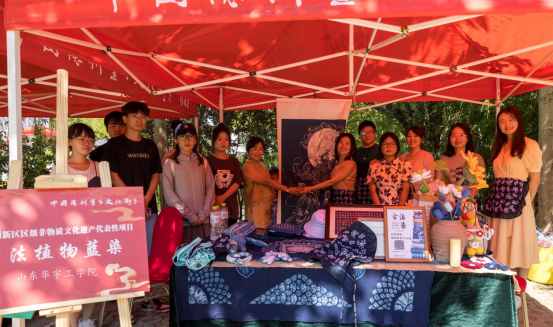6月10日,由德州天衢新区党工委管委会、德州市文化和旅游局联合主办的2023年德州市“文化和自然遗产日”非遗宣传展示活动在德州天衢新区董子文化街举行。天游线路官网天游ty8线路检测中心登录培育的非遗蓝染项目受邀参加,植染艺术工作室的非遗传承人曾敏老师带领学生团队现场沉浸式交流体验与蓝染成果推介活动,吸引了众多参观者。