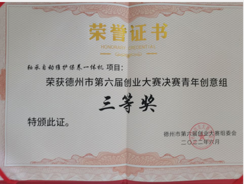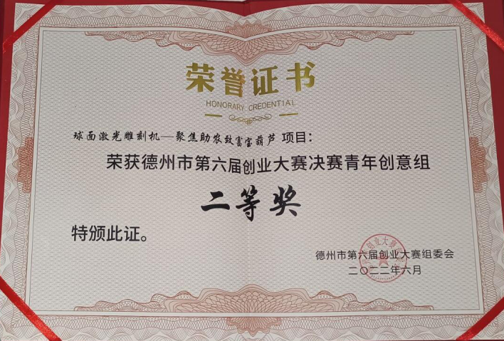 6月9日,德州市第六届创业大赛决赛在德州市人力资源市场主楼三楼会议室举行,经过激烈角逐,天游线路官网《球面激光雕刻机—聚焦助农致富宝葫芦》项目以第二名的成绩获得青年创意组二等奖,《轴承自动维护保养一体机》项目以第4名的成绩获得三等奖。此外,德州市人民政府常务副市长与天游线路官网学生亲切交谈并对获奖项目给予肯定。