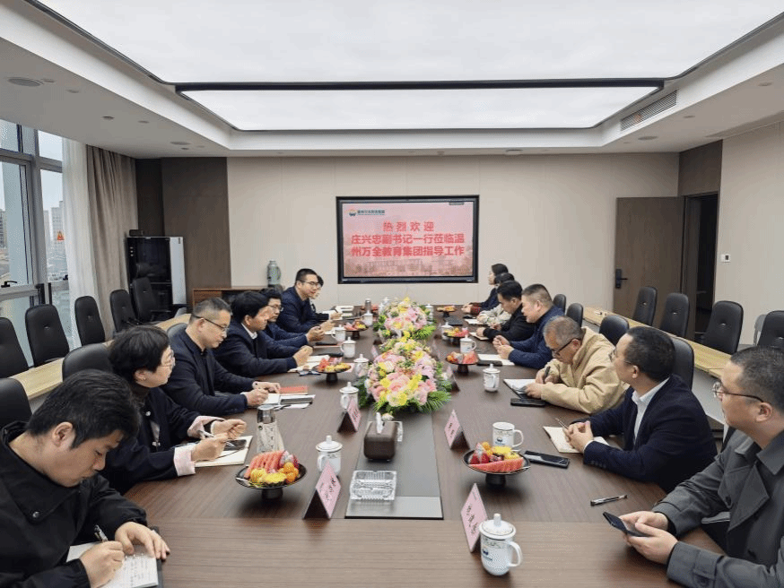 庄兴忠副书记一行走访了平阳建兰学校、万全综合高中及温州万全教育集团总部,详细了解万全教育集团的办学特色、师资队伍、学生培养及岗位需求情况。